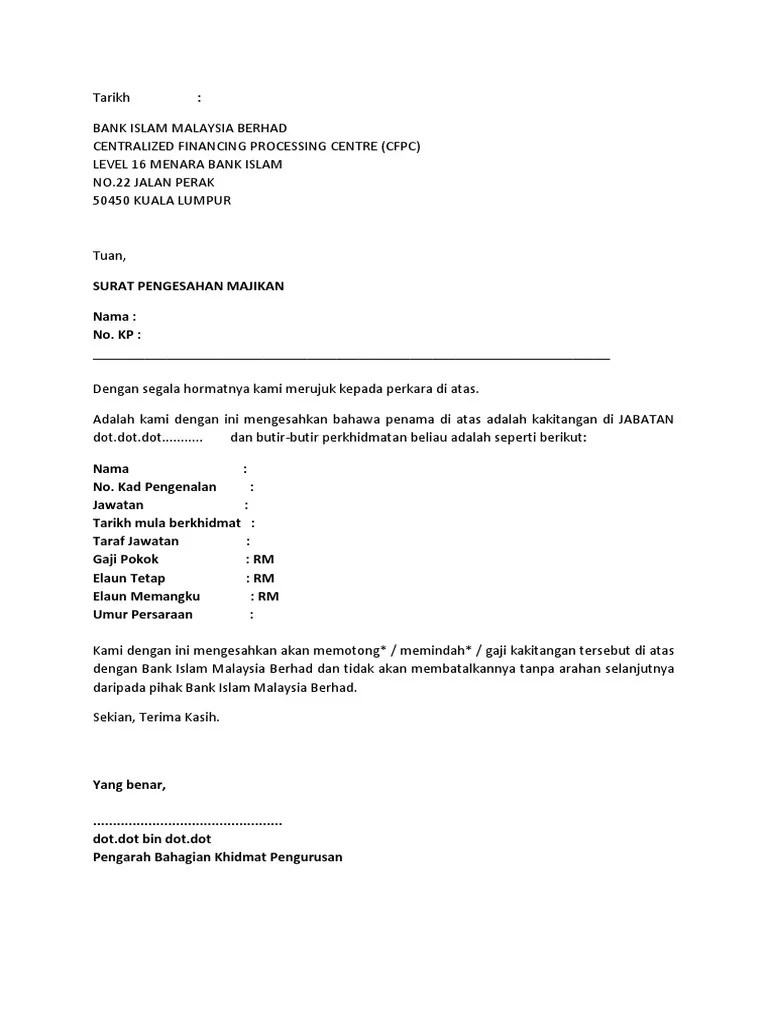 .majikan kepala surat (syarikat) no rujukan : Lowongan kerja cpns 2018, format terbaru contoh surat lamaran cpns kementerian hukum dan ham, surat lamaran penjaga tahanan, surat pernyataan tenaga sipir, surat pernyataan cpns kemenkumham. Surat pengesahan majikan diperlukan oleh sekolah untuk mereka yang tidak mempunyai penyata gaji atau ingin membuat pinjaman kepada bank atau institusi kewangan bagi contoh 5. Contoh surat pengesahan majikan swasta atau kerajaan untuk jawatan pekerja atau contoh surat confirmation letter. Dokumen yang anda download pada halaman ini berbentuk dokumen word, png, jpeg, dan pdf.