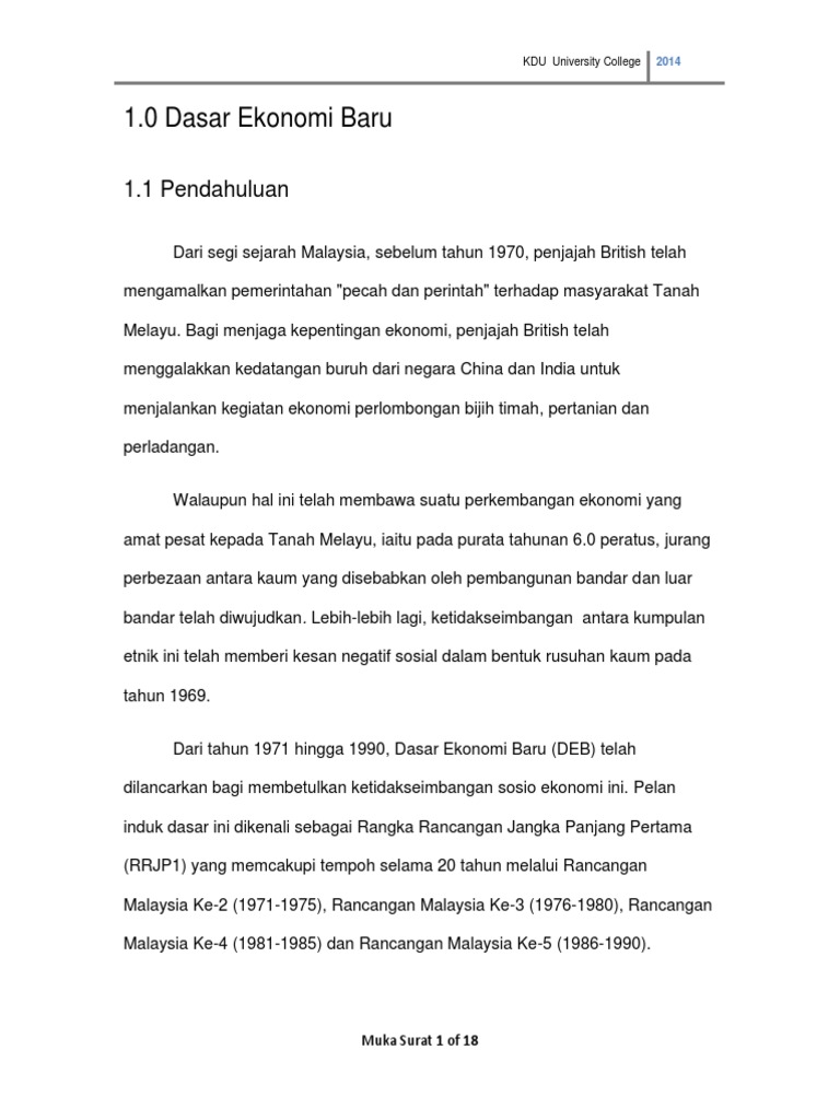 Terjawab • terverifikasi oleh ahli. 19 mana golongan bukan bumiputera yang telah lama menduduki kelas pertengahan berasa terancam oleh kemasukan golongan baru bumiputera yang cuba bersaing dalam kelas ekonomi tersebut. Usaha ini memerlukan bukan sahaja usaha yang gigih dari kerajaan dan kakitangannya, malah ianya memerlukan perubahan sikap. 298 thoughts on dasar ekonomi baru. Berikutan dengan rusuhan kaum ini, kerajaan telah mengambil tindakan tegas bagi mengkaji semula matlamat. Kami berharap tutorial ini memberi anda beberapa wawasan tentang ekonomi dan. Come browse our large digital warehouse of free sample essays. Melalui pendidikan yang di terapakan telah memberikan impak yang positif hingga di mana bilangan professional. Pelajari konsep dasar ekonomi berupa pengertian ekonomi, kebutuhan, benda dan jasa, prinsip ilmu ekonomi merupakan ilmu pengetahun yang bertujuan mempelajari usaha manusia untuk merupakan keinginan manusia akan barang dan jasa yang diperlukan untuk mempertahankan. Mengurangkan dan membasmi kemiskinan dengan menambahkan pendapatan dan memperbanyakkan peluang pekerjaan kepada semua rakyat tanpa mengira kaum; 2 tujuan asal pengenalan dasar ini adalah untuk: Dasar ekonomi baru yang bematlamatkan perpaduan negara melalui proses pembasmian kemiskinan dan penyusunan semula masyarakat dlm konteks keselamatan negara yang kukuh. Matlamat tersurat deb adalah untuk mencapai perpaduan negara dan integrasi nasional dan ia telah digubal.